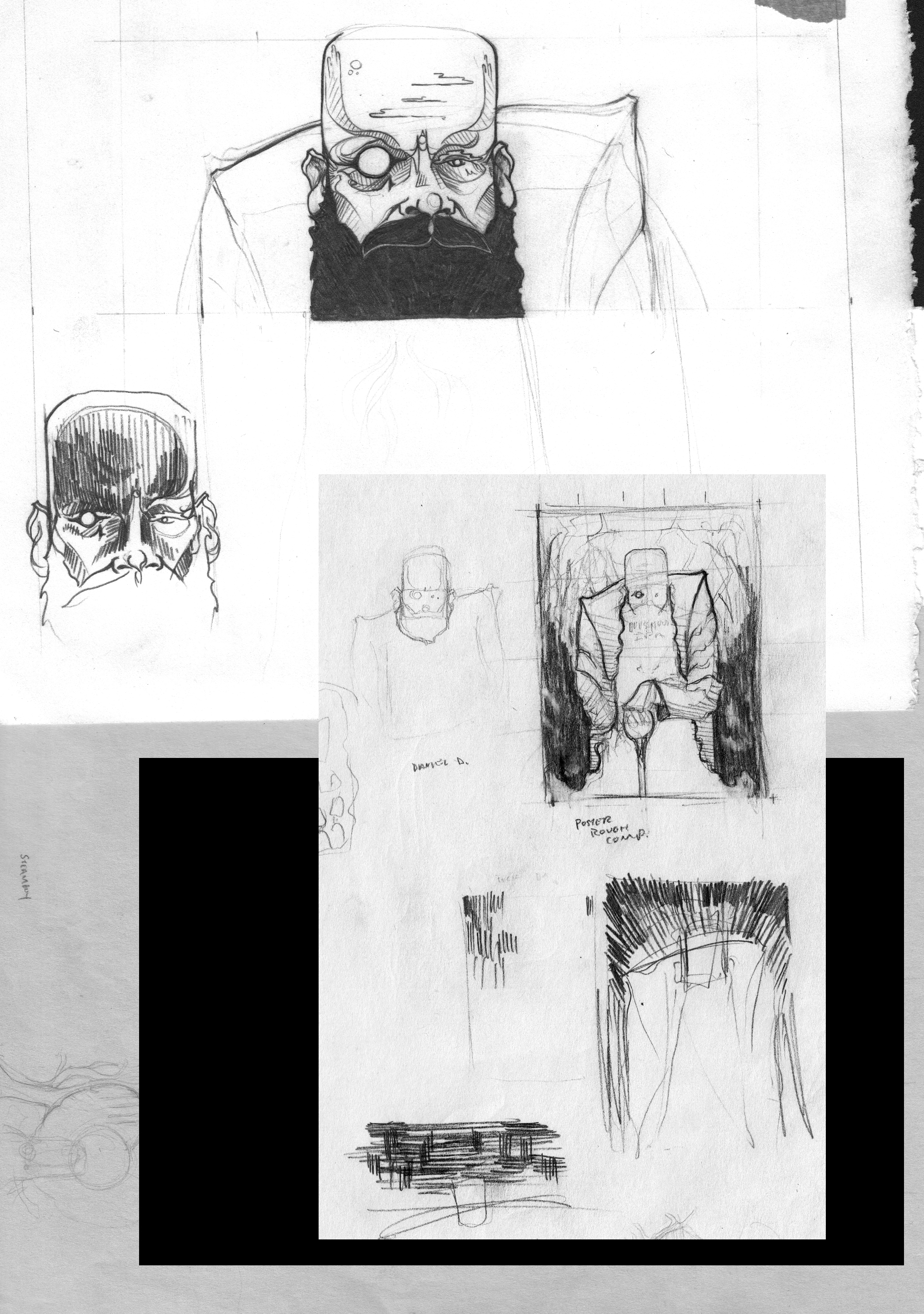 As you can see in sketches, the original plan was for a much more cropped version of just the face, with the thought being that the final screenprint would show the image in its entirety.